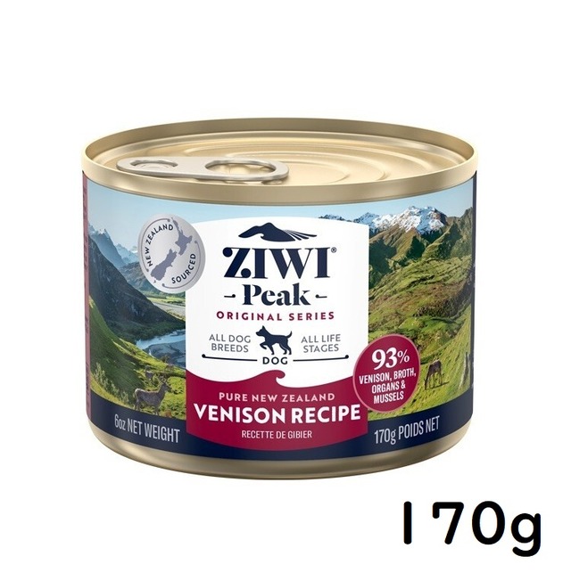 ≪健康を維持したいシニア犬や体重が気になるパートナー(愛犬)に≫ 穀物を使用せず上質の鹿肉をたっぷり使用。鹿肉は低カロリー・低脂肪・高タンパクなので、健康を維持したいシニア犬や体重が気になるパートナー(愛犬)におすすめ。食物アレルギーになりにくい消化の良いタンパク質なので、アレルギーが気になるパートナーや、足腰の健康維持に必要な成分も豊富に含まれているので、足腰の健康を維持したいパートナーにもおすすめ。 [商品名] ZIWI ドッグ缶 ベニソン [内容量] 170g [原産国] ニュージーランド [成分値] タンパク質 10.0%以上、脂質 4.0%以上、粗繊維 2.0%以下、水分 78.0%以下、灰分 3.0%以下、コンドロイチン硫酸 300mg/kg以上 [カロリー] 120kcal/100g [原材料] 生肉・内臓・魚介類91%(ベニソン生肉、ベニソン肉汁、ベニソンハート生肉、ベニソンラング生肉、ベニソンレバー生肉、ベニソンキドニー生肉、ベニソントライプ生肉、ニュージーランド緑イ貝、ベニソンボーン)、レシチン、ミネラル類(リン酸二カリウム、硫酸マグネシウム、亜鉛アミノ酸複合体、銅アミノ酸複合体、セレン酵母、マンガンアミノ酸複合体)、乾燥海草、海塩、ビタミン類(E、チアミン硝酸塩、B5、D3、葉酸)、増粘安定剤としてひよこ豆を使用 ※本製品には、遺伝子組み換え原材料は使用していません。 [備考] 本製品は、全ライフステージを対象としたAAFCOの栄養基準に適合しています。 きれいな水をいつでも飲めるように用意してください。 保存方法:冷暗所で保存してください。開封後は必ず冷蔵保存し、7日以内で使い切ってください。 【ご注意】 こちらの商品は、まれに原材料である緑イ貝の「ひげ」と呼ばれる足糸(岩に貼りつくために必要なひげのような部位)が入っている場合があります。天然の緑イ貝の体の一部のため、パートナーが食べても問題はございません。 [配送について] 常に最新賞味期限にてお届けできるよう、メーカー取り寄せにて対応しております ご注文いただいてから5営業日前後のお届けとなります ※お届け先が遠方、離島等の一部地域の場合等はさらに数日を要する場合がございます。 その他、天候や配送状況により納品が遅れることがございます。 ※年末年始・夏季休業については、N-food. BASE店ホームまたは公式LINEよりご確認ください [キャンセル・返品について] ・商品発送後のキャンセルはお受けすることができません ・お客様の都合による返品は原則お断りしています ①明らかな不良品、性質に問題がある場合 ②当店の過失によりお客様が注文した商品と相違する商品が届けられた場合 上記に該当する場合、商品到着日より7日以内にお問い合わせフォームからご連絡願い致します この期間を過ぎた場合、返品はお受けすることができません -------------------- (犬が消化を苦手とする穀類は不使用) 犬が消化を得意とする良質な鹿肉やグリーントライプなどの内臓類と緑イ貝が製品の91%以上も含まれています。また、犬が苦手とする穀類は一切使用していません。本来肉食である彼らが狩りで得る食事に限りなく近いフードです。 (素材を活かした低温加工) 本来素材の持つ「栄養素」や「旨み」を出来るだけ失なわないよう、高温で一気に加工せず、時間をかけて低温でゆっくり加工しています。 (厳選されたニュージーランド産の素材のみを使用) 素材は広大な牧場でのびのびと育てられた鹿や羊、きれいな海で捕れた魚介類などを使用しています。また、ニュージーランドでは家畜の病気の発生が非常に少ないことでも知られています。製造はニュージーランドの自社工場にて製造されています。非常に厳しい衛生基準の下に管理されて製造されており、使用されている缶は安全性を考慮し、BPA(ビスフェノールA)不使用。 --------------------