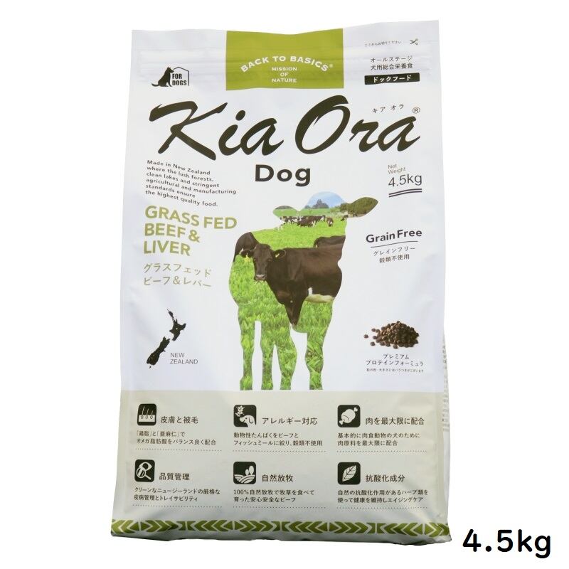 ニュージーランドは世界的に優れた品質の肉、魚介、乳製品の生産国です。「キアオラ」は、自然のままの農園を有し、豊かな恵みを提供するきれいな海に囲まれた、家畜に疫病のない非汚染国ニュージーランドの原材料で作ったフードです。