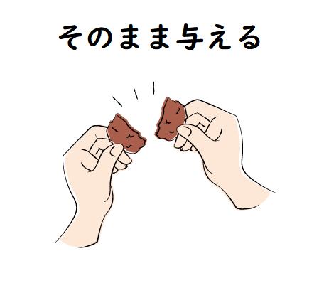 トレーニングのごほうびやおやつに、食べやすいサイズにちぎって与えてください。
