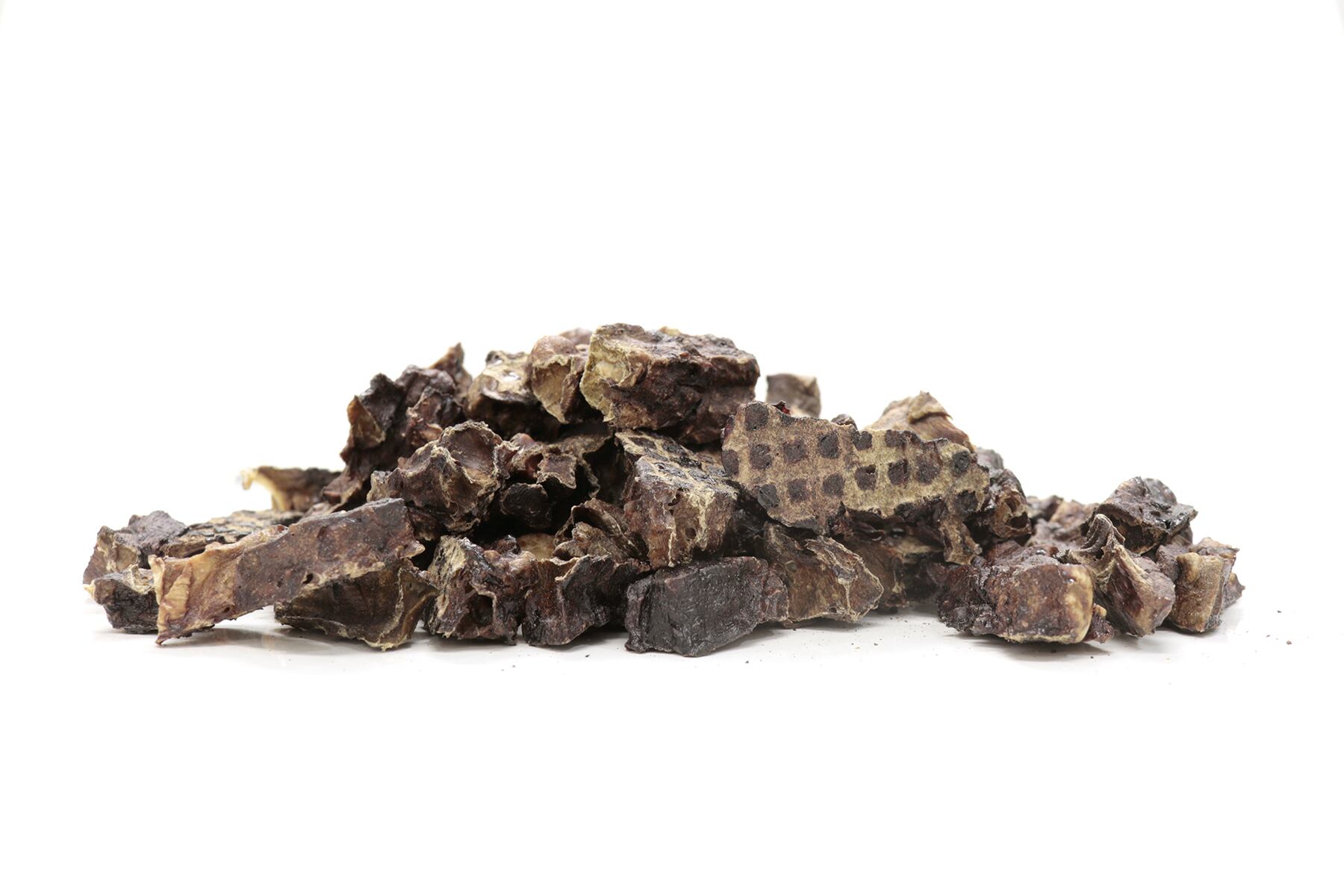 軽くてサクサクした食感のビーフのラング。肺は内臓のなかでも特に低カロリーで、歯の弱い子からお口の小さな猫まで与えやすいおやつです。