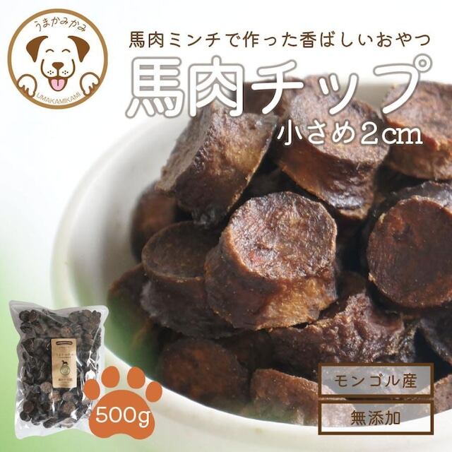 馬肉チップ(小さめ2cm)500g モンゴル産愛犬のおやつ うまかみかみ